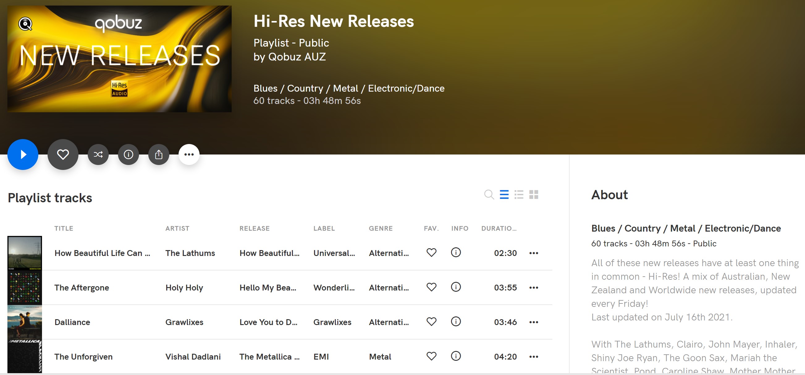 Hi-Res New Releases (#3 ahead of St. Vincent, Alice Coltrane, Lana Del Rey & King Gizzard & The Lizard Wizard): https://play.qobuz.com/playlist/5767552